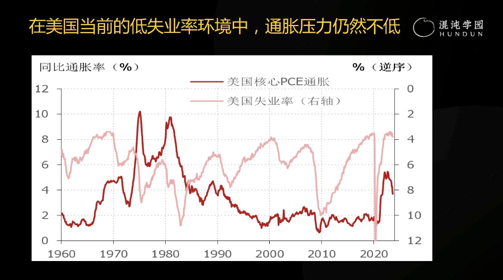 从过去半个世纪的经验来看,每次美国通胀水平的下降,都要以美国失业率的显著上升为前提。道理很简单,只有失业率比较高了,劳工在跟企业家讨价还价的时候,溢价权才能下降,工资的涨幅才能降下来,通胀才能够有所减缓。但这次你会发现,好像不太一样,美国失业率处在50年来的低位,但通胀率又比较明显的下降了。这种情况下,尽管美国通胀率在回落,也很难说它的通胀压力就过去了。尽管美国已经经历了非常强的货币紧缩,但对未来货币紧缩的压力,我们还是要保持警惕。美国衰退,不衰退,或者说只是温和衰退,现在还不能确定。在这样背景下,中国的外需其实是有压力的。