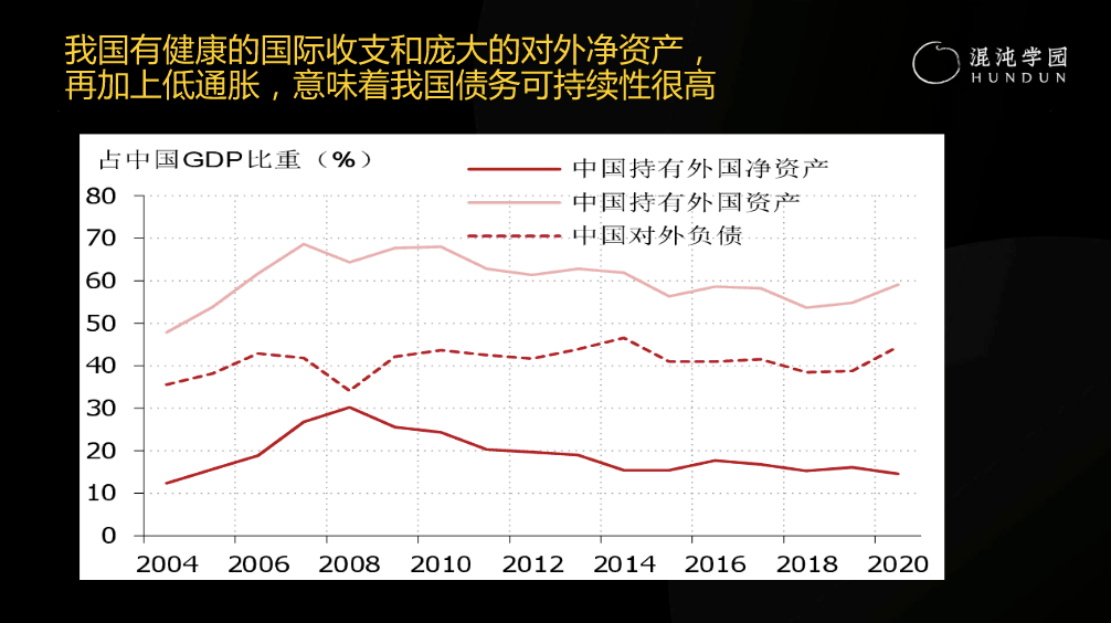 反过来,如果一个国家没有贸易赤字,没有大量外债,同时又没有通胀压力,这个国家的债务就是可持续的。所以真正一个国家债务的硬约束在哪里?在它的国际收支。从这个角度来看,中国的债务约束远没收紧。中国其实是一个可以继续杠杆上升,债务上升的国家。