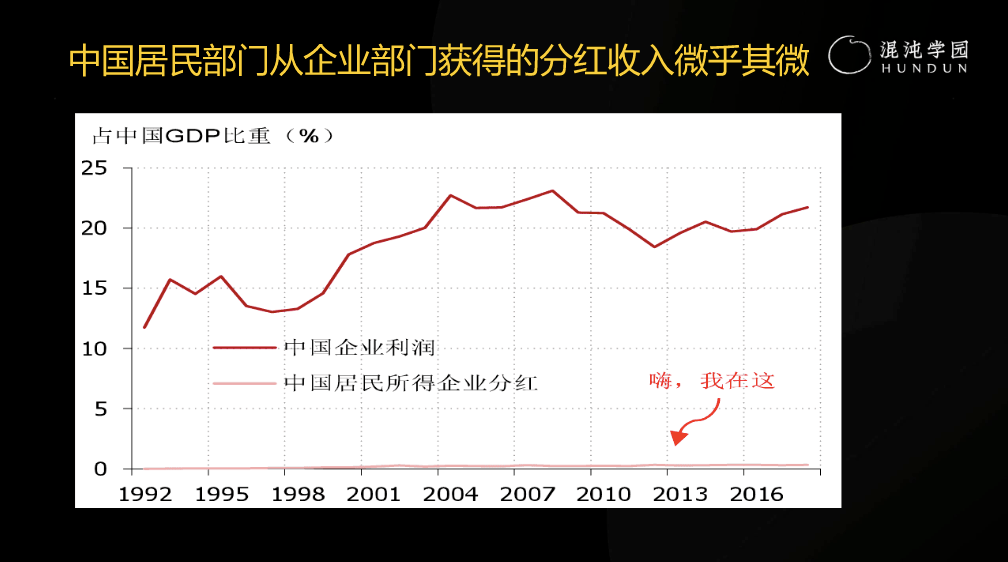 尽管我们企业部门的利润占GDP比重超过20%,我们居民所得的企业的分红占GDP比重不超过0.5%,居民们几乎享受不到来自于企业的分红。