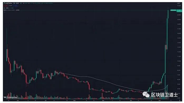 2023 年 1 月 21 日,比特币开发者 Casey Rodarmor 推出了 Ordinals 协议,开启了比特币生态的新玩法。10月24日,Ordinals协议进行了一次重大更新,发布v0.10.0版本,新增了批量铭刻、添加元数据、铭文编号终点等多种功能。随着BTC上涨以及社区的再度活跃,龙头$ORDI触底反弹。11月7日,币安上线$ORDI,推动$ORDI大幅上涨,单日涨幅接近100%。