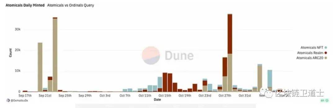 与Ordinals协议相比,Atomicals协议的设计更加细致,内置了代币、NFT、领域、容器等模块,为开发者和用户提供了多种常用功能。自9月17号上线以来,该协议迎来了诸多开发者和用户,已上线钱包、浏览器、铸造平台、域名服务等工具,铸造量达到了数万次,目前仍在高速增长。