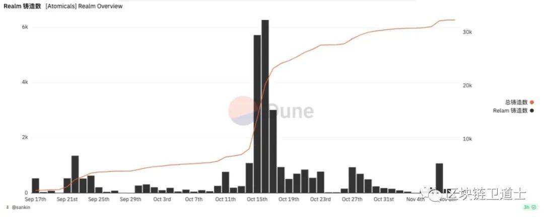 有意思的是,领域通过后缀支持子领域的建设,打开了更多的应用和玩法,比如用户可以在一个领域下注册多个DAO 进行管理。近期领域的铸造迎来高峰,长度较短的1、2、3位数领域遭到抢注,目前领域总铸造数已超过30000个。